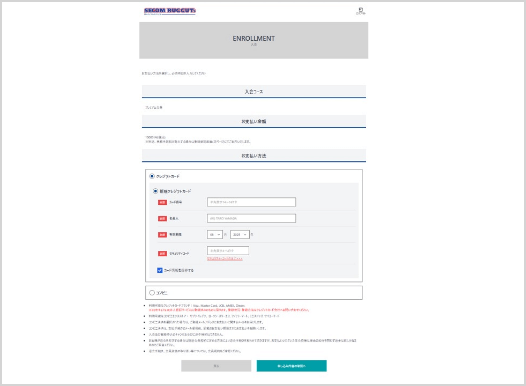 その後改めて希望の支払い方法を選択し入会手続きをお取りください -